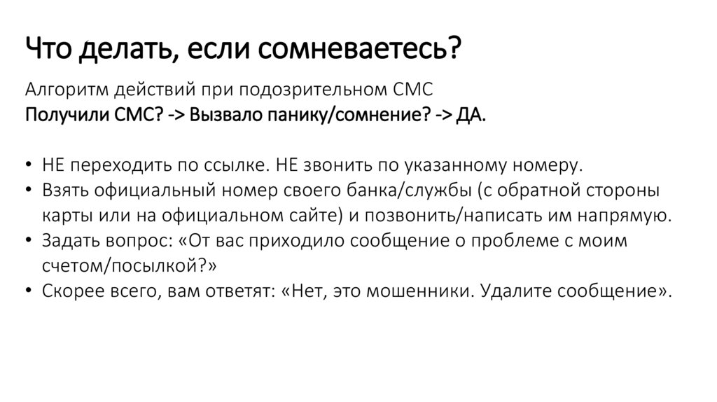 Что делать, если сомневаетесь?Алгоритм действий при подозрительном СМС