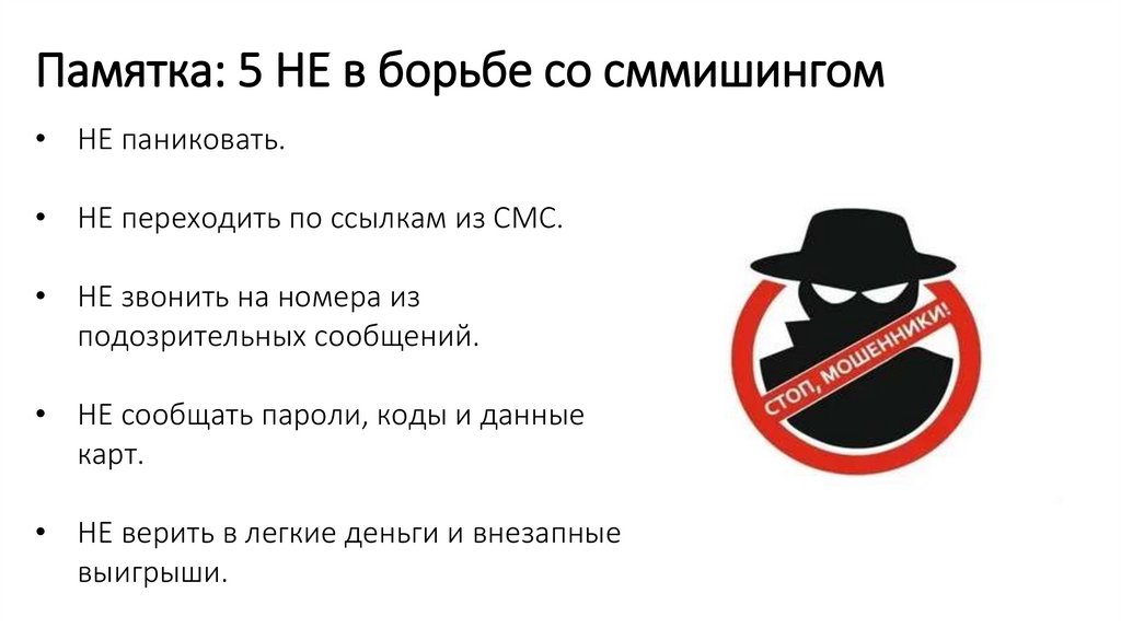 Памятка: 5 НЕ в борьбе со сммишингом• НЕ паниковать.