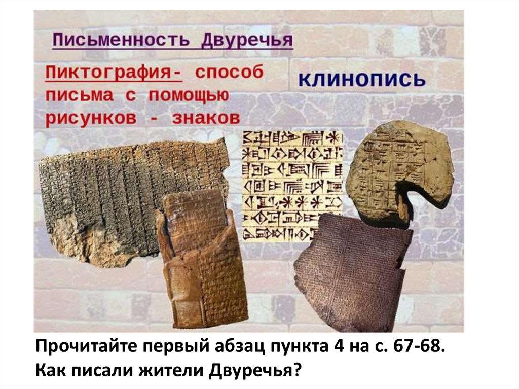 Прочитайте первый абзац пункта 4 на с. 67-68.Как писали жители Двуречья?
