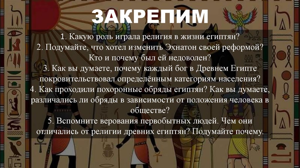 ЗАКРЕПИМ1. Какую роль играла религия в жизни египтян?