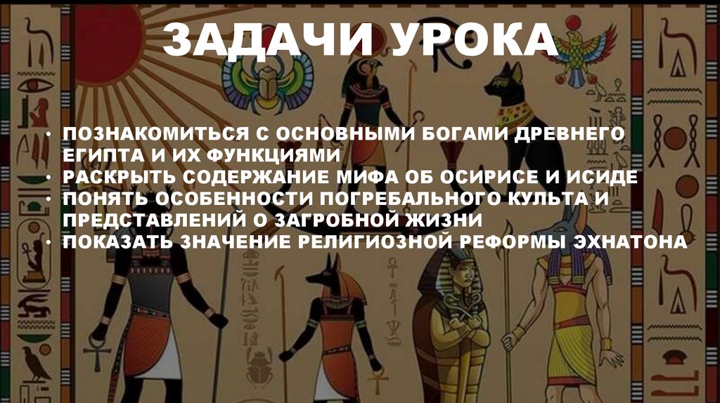 ЗАДАЧИ УРОКА• ПОЗНАКОМИТЬСЯ С ОСНОВНЫМИ БОГАМИ ДРЕВНЕГО
