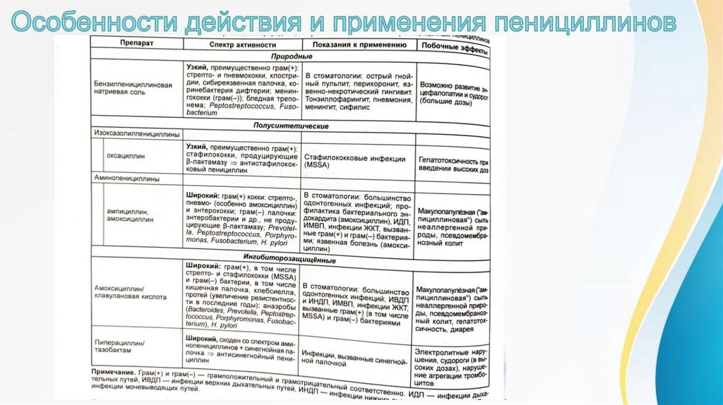 • Не действуют на кишечные бактерии, синегнойную палочку, возбудители
