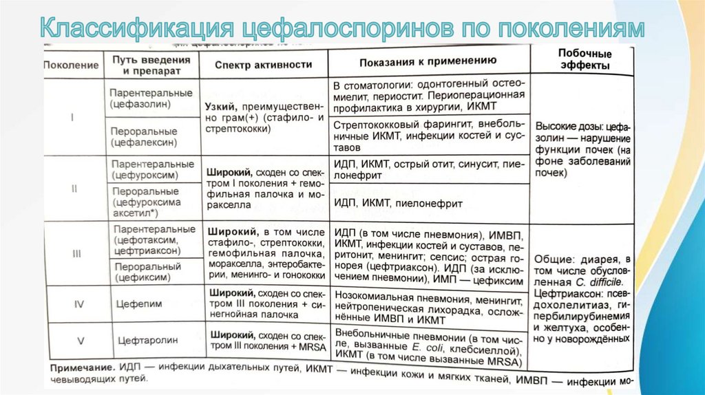 Препараты:- амоксициллин + клавулановая кислота (Аугментин*); - пиперациллин +