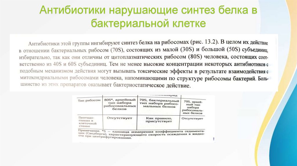 Антибиотики нарушающие синтез белка вбактериальной клетке