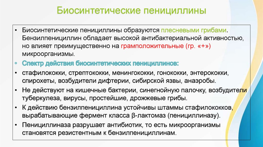 • Пенициллиназа разрушает антибиотик, то есть микроорганизмы