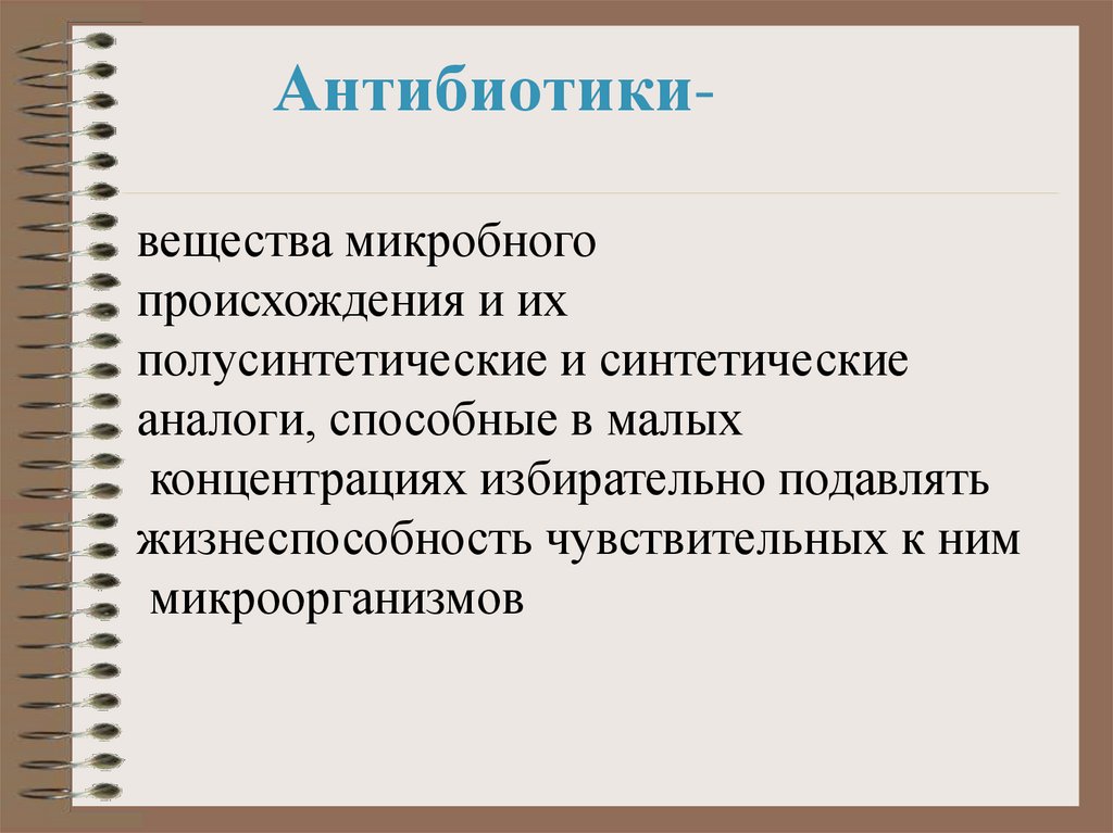 • Понятие «антибиотики».• Принципы антибиотикотерапии.
