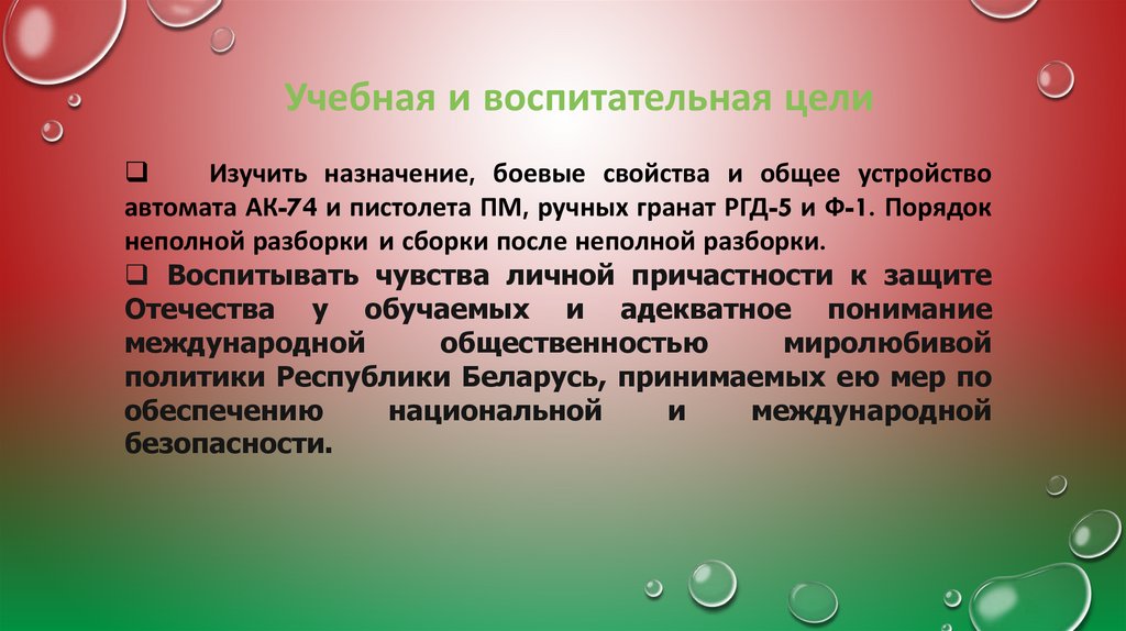 Учебная и воспитательная целиИзучить назначение, боевые свойства и общее устройство