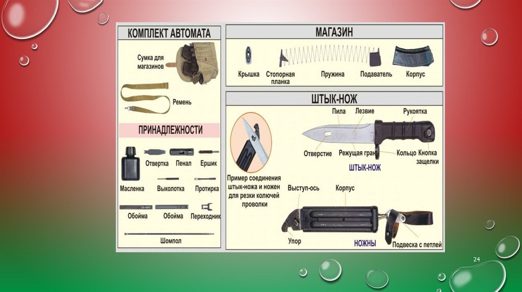 автомата АК-74 и пистолета ПМ, ручных гранат РГД-5 и Ф-1. Порядок
