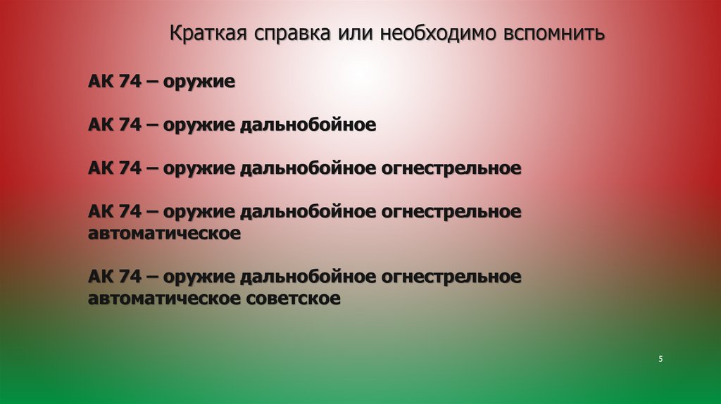 Краткая справка или необходимо вспомнитьАК 74 – оружие