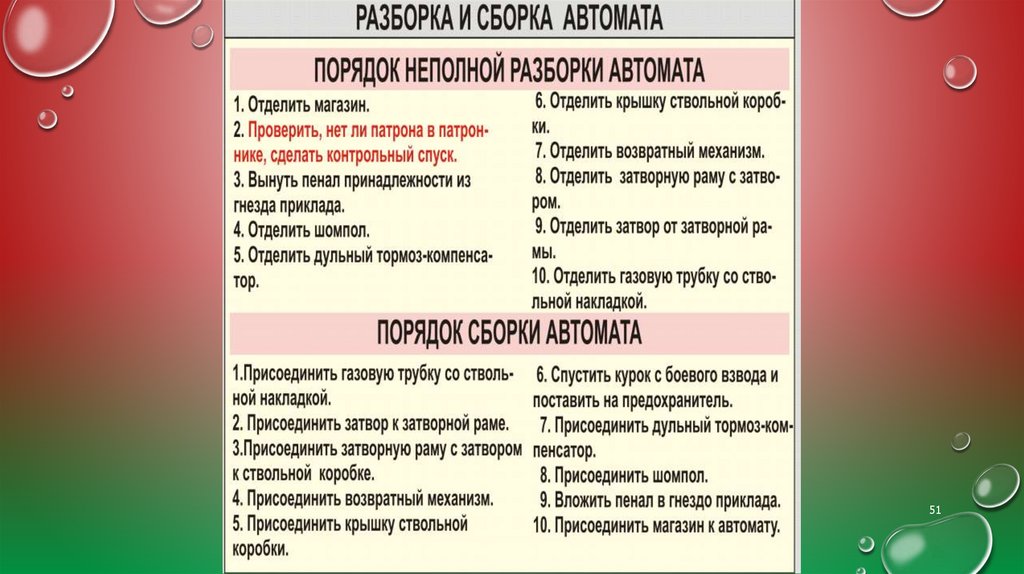 50. Вопрос 2 . Порядок неполной разборки и сборки после неполной разборки автомата АК 74 и пистолета ПМ