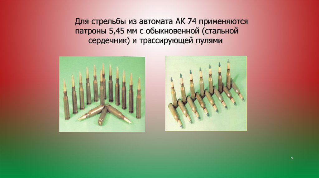 Для стрельбы из автомата АК 74 применяютсяпатроны 5,45 мм с обыкновенной (стальной