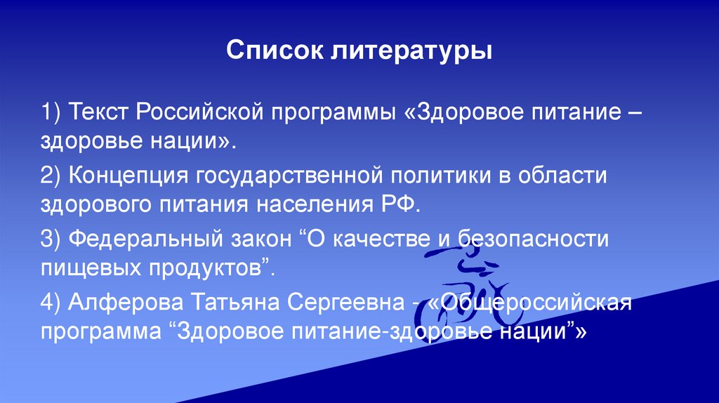 Список литературы1) Текст Российской программы «Здоровое питание –