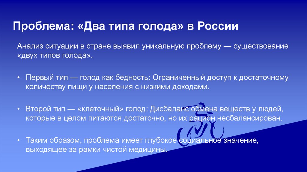 Проблема: «Два типа голода» в РоссииАнализ ситуации в стране выявил уникальную проблему — существование
