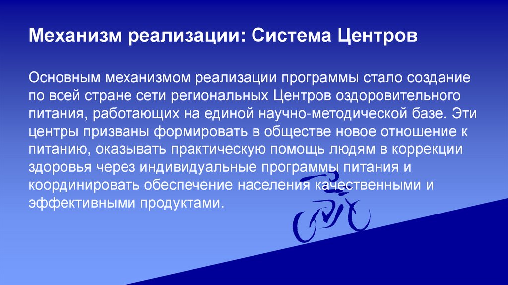 Механизм реализации: Система ЦентровОсновным механизмом реализации программы стало создание
