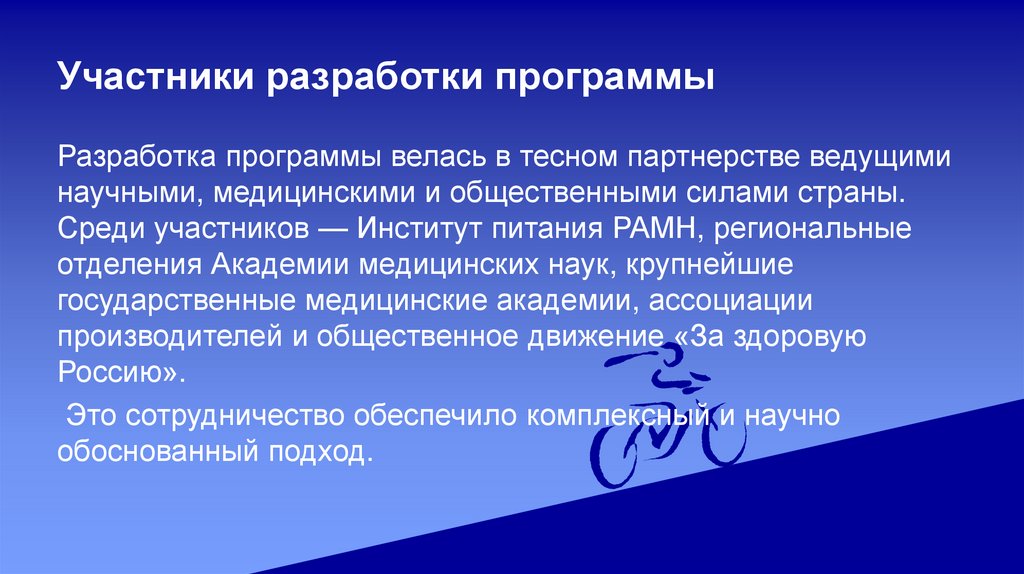 Участники разработки программыРазработка программы велась в тесном партнерстве ведущими