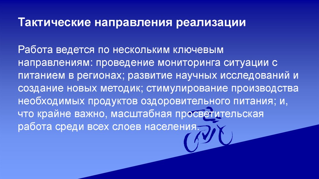 Тактические направления реализацииРабота ведется по нескольким ключевым