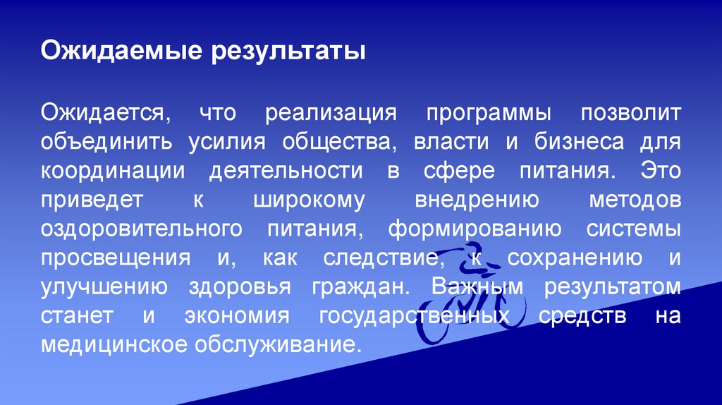 Ожидаемые результатыОжидается, что реализация программы позволит