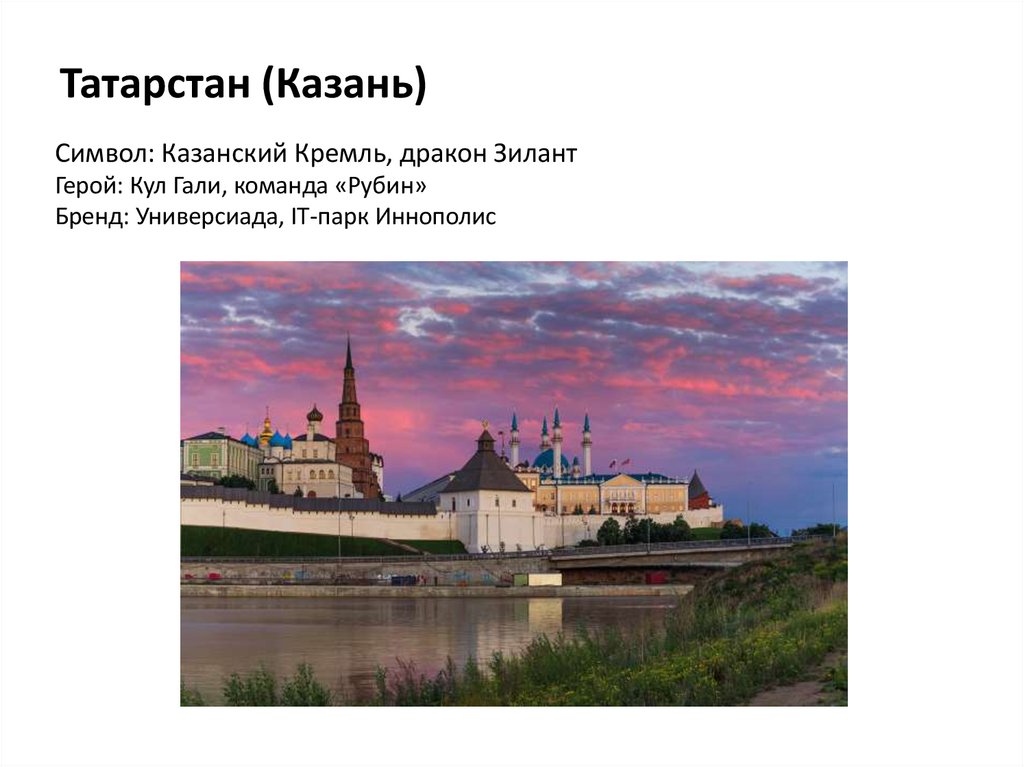 Татарстан (Казань)Символ: Казанский Кремль, дракон Зилант