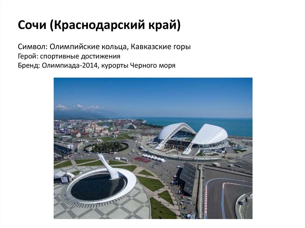 Сочи (Краснодарский край)Символ: Олимпийские кольца, Кавказские горы