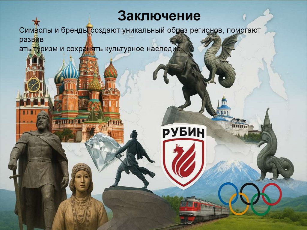 ЗаключениеСимволы и бренды создают уникальный образ регионов, помогают