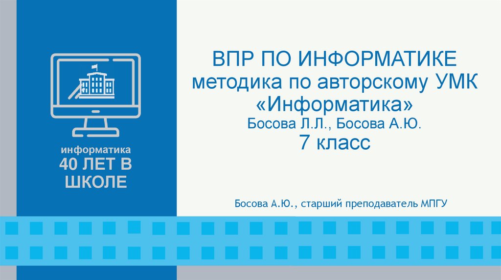 1. ВПР ПО ИНФОРМАТИКЕ методика по авторскому УМК «Информатика» Босова Л.Л., Босова А.Ю. 7 класс