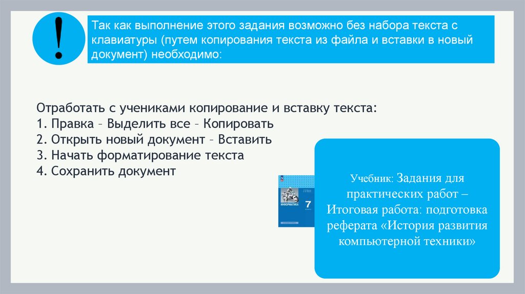 Так как выполнение этого задания возможно без набора текста склавиатуры (путем копирования текста из файла и вставки в новый