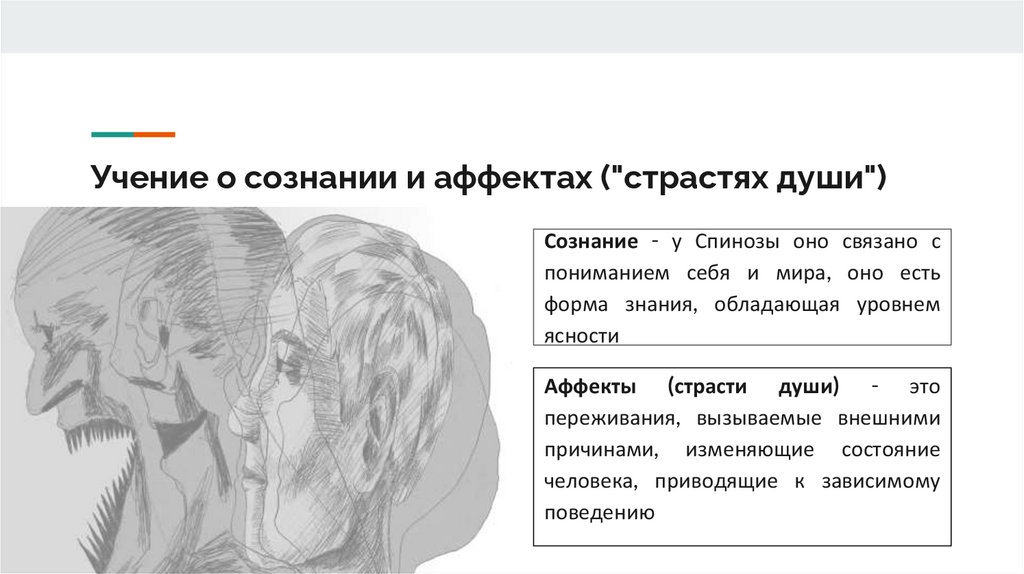 Учение о сознании и аффектах ("страстях души")Сознание - у Спинозы оно связано с