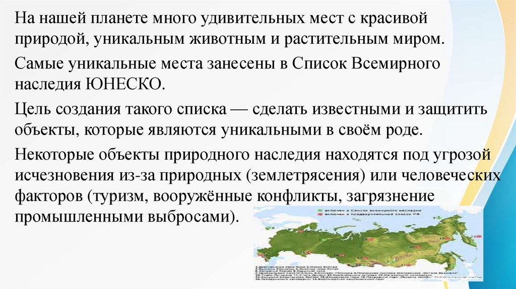 Самые уникальные места занесены в Список Всемирного