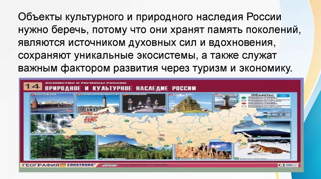 Объекты культурного и природного наследия Россиинужно беречь, потому что они хранят память поколений,