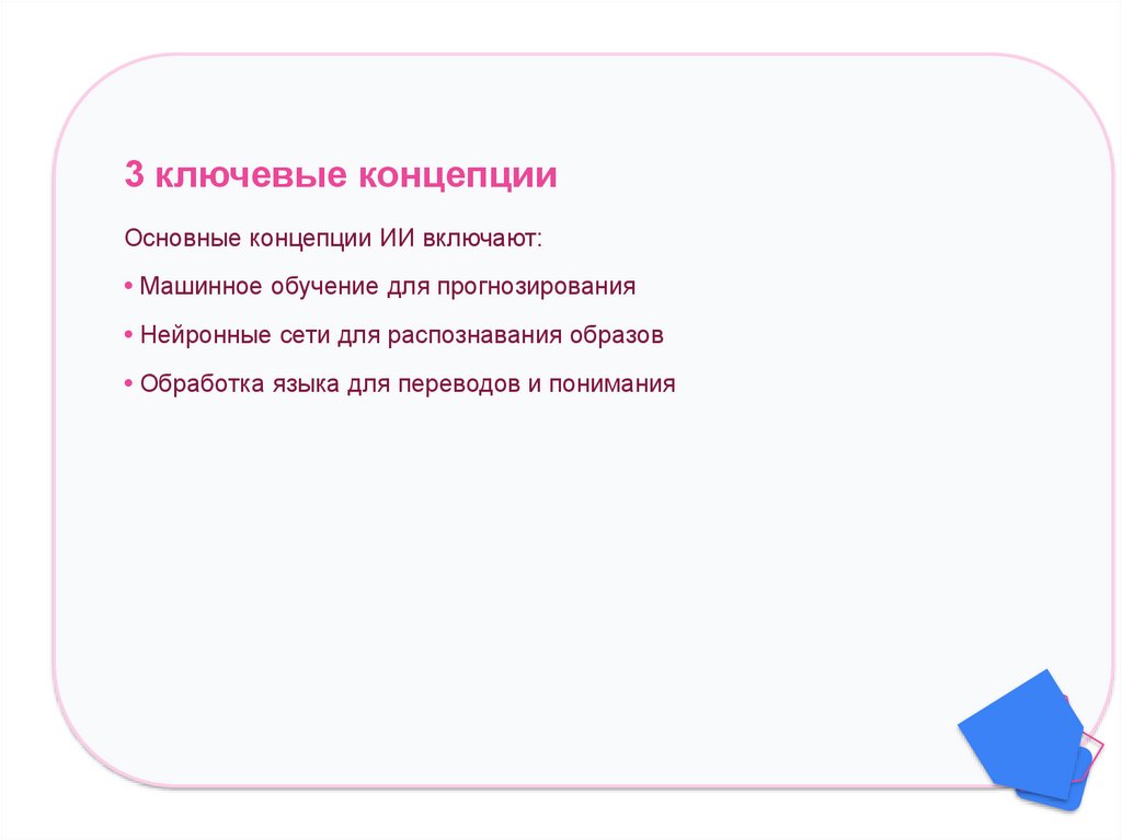 3 ключевые концепцииОсновные концепции ИИ включают: