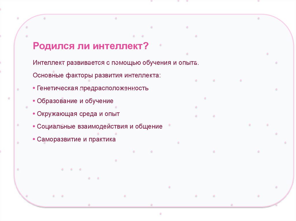 Родился ли интеллект?Интеллект развивается с помощью обучения и опыта.