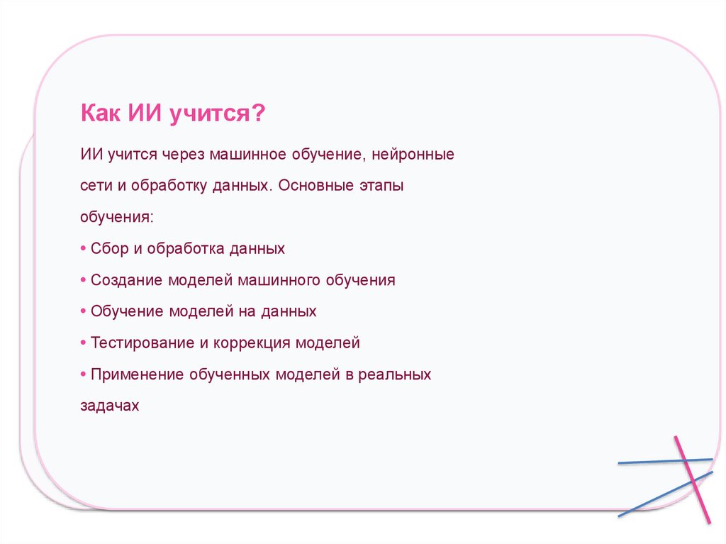 Как ИИ учится?ИИ учится через машинное обучение, нейронные