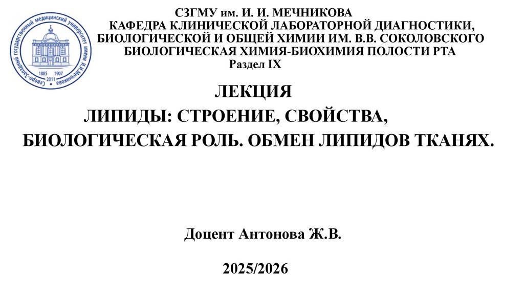 СЗГМУ им. И. И. МЕЧНИКОВАКАФЕДРА КЛИНИЧЕСКОЙ ЛАБОРАТОРНОЙ ДИАГНОСТИКИ,