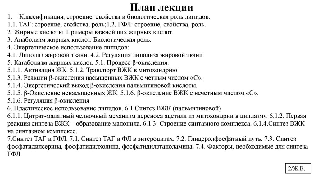 План лекции1. Классификация, строение, свойства и биологическая роль липидов.