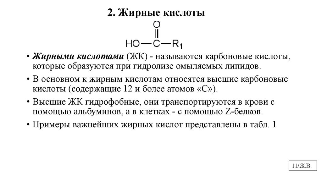 2. Жирные кислоты. Примеры важнейших жирных кислот.
