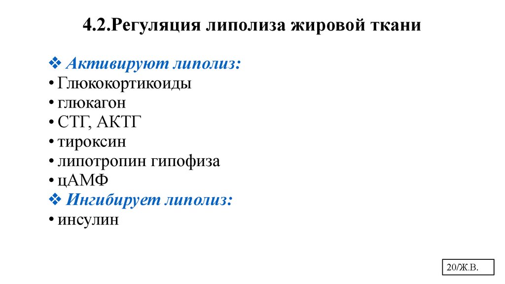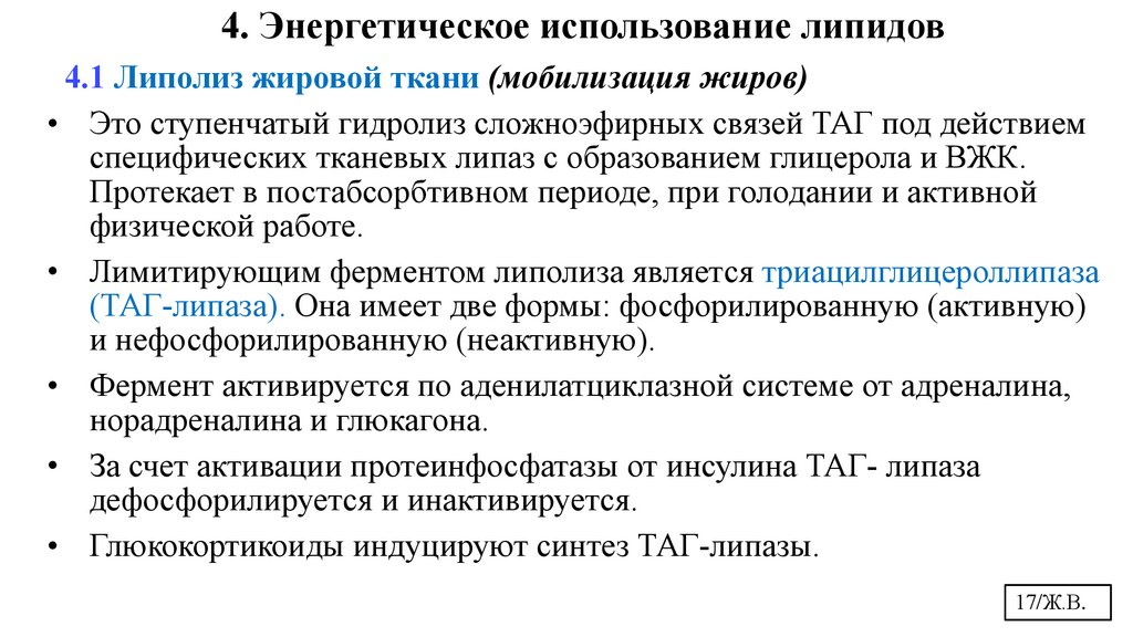 4.1. Липолиз жировой ткани. 4.2. Регуляция липолиза жировой ткани