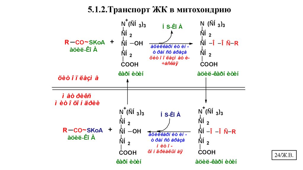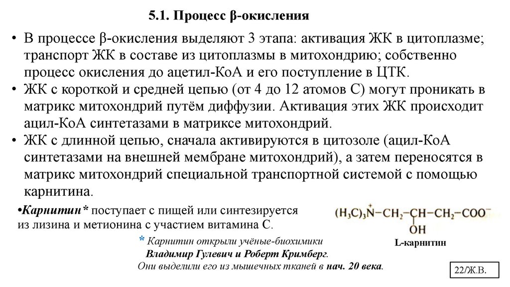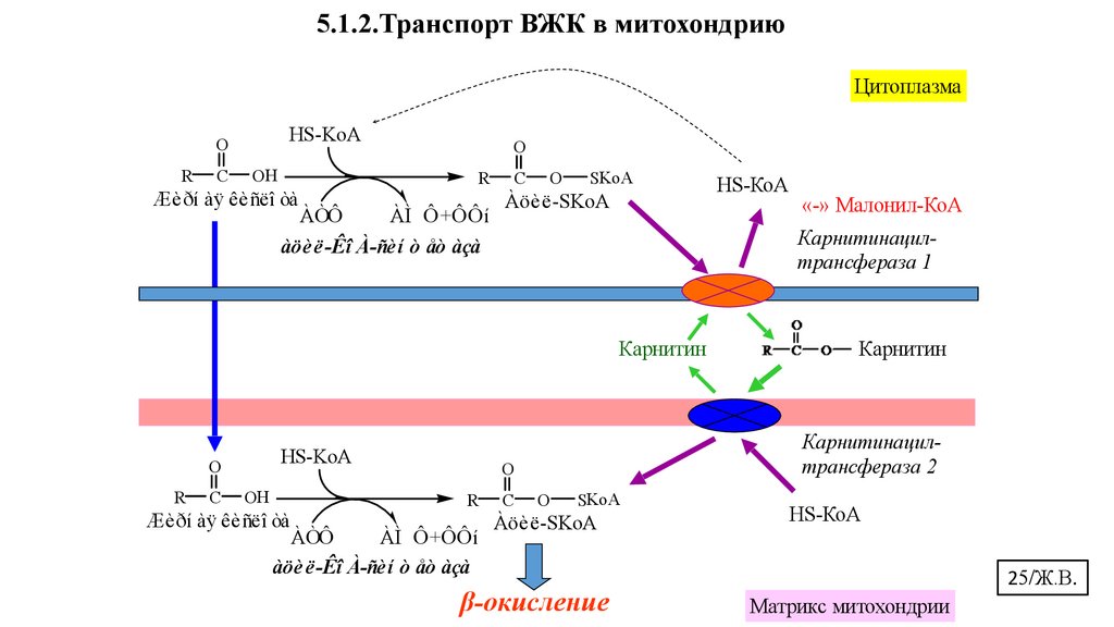5.1.1. Активация ЖК. 5.1.2. Транспорт ВЖК в митохондрию