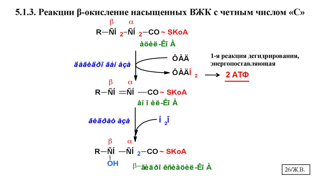5.1.3. Реакции β-окисления насыщенных ВЖК с четным числом «С».