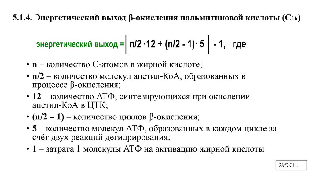 5.1.4. Энергетический выход β-окисления пальмитиновой кислоты.