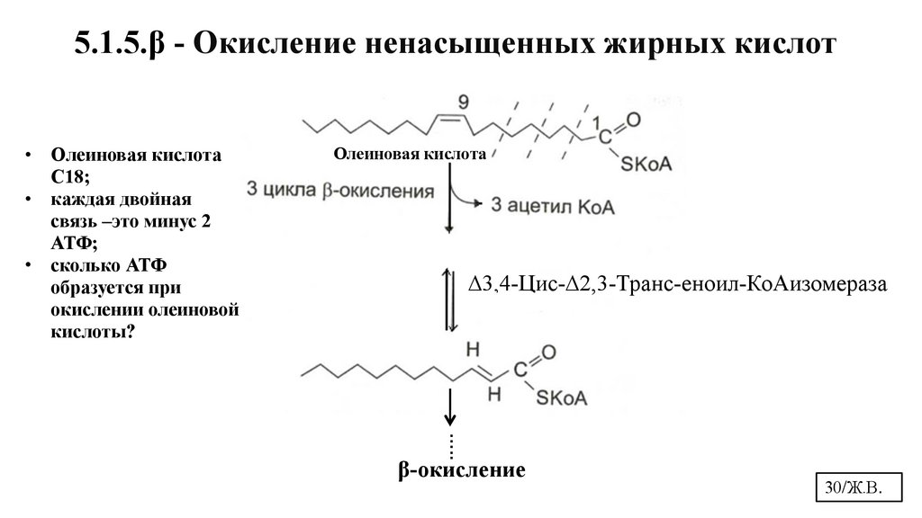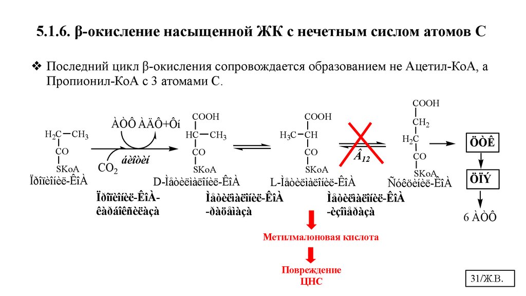 5.1.5. β-Окисление ненасыщенных ЖК. 5.1.6. β-окисление ВЖК с нечетным числом «С».