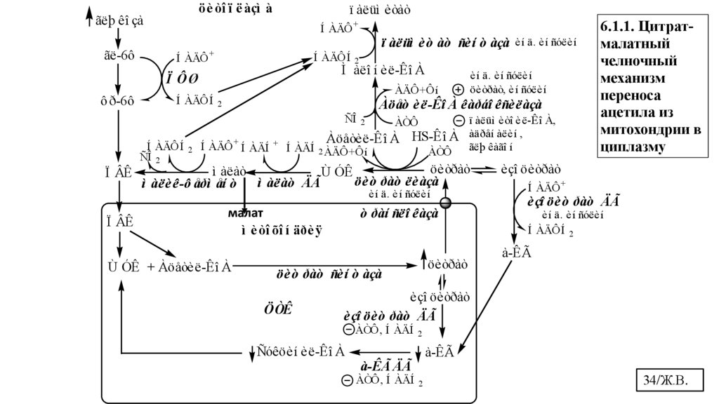 6.1.1. Цитрат-малатный челночный механизм переноса ацетила из митохондрии в циплазму. 6.1.2. Первая