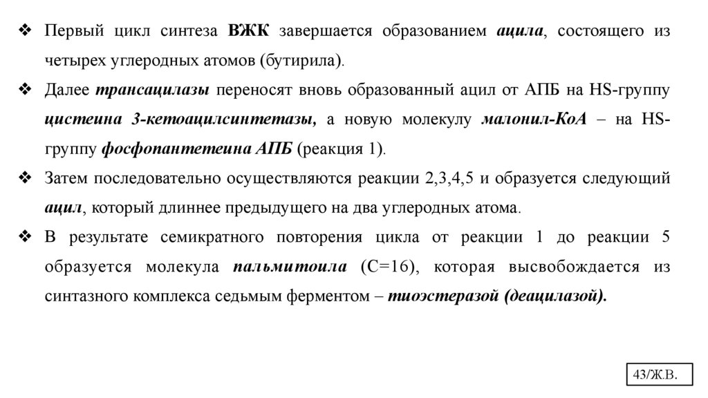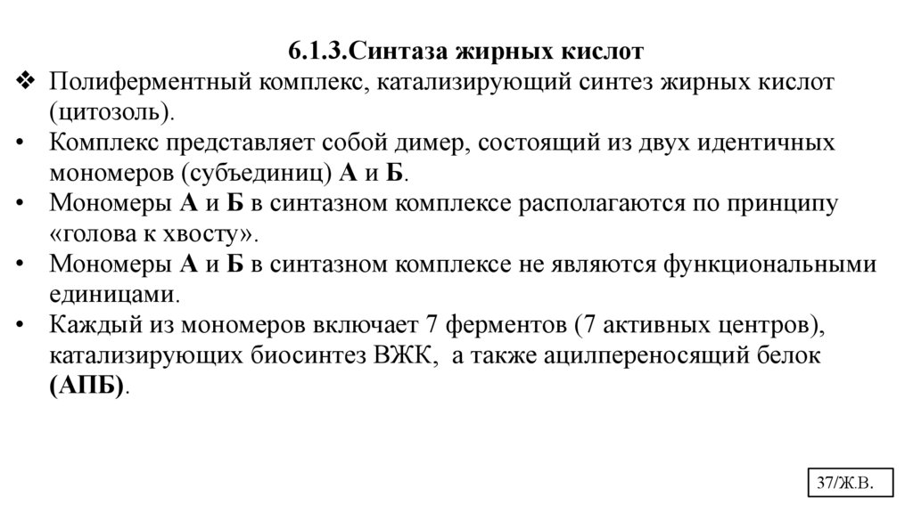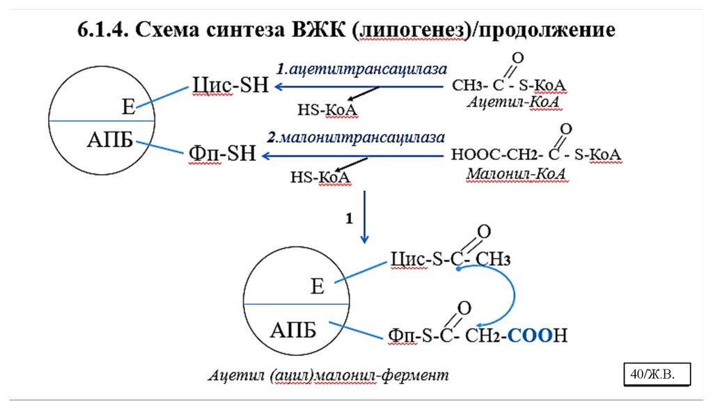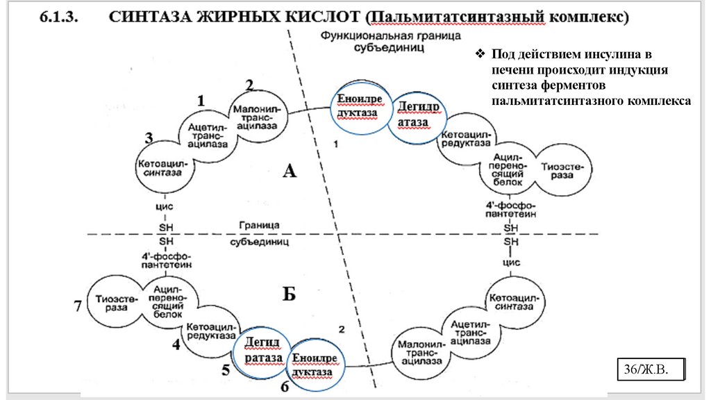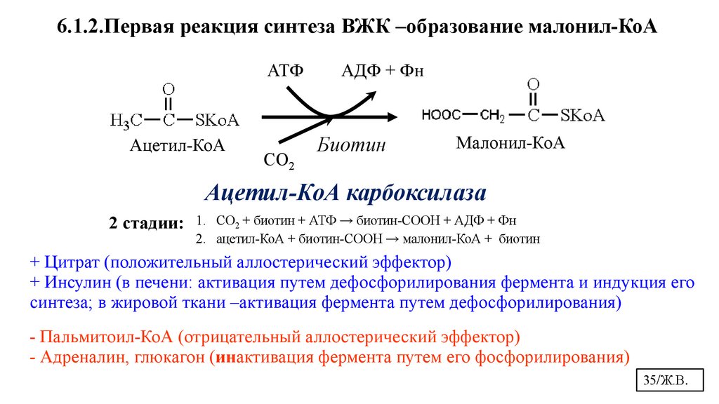 реакция синтеза ВЖК – образование малонила. 6.1.3. Строение синтазного комплекса. 6.1.4.Синтез ВЖК