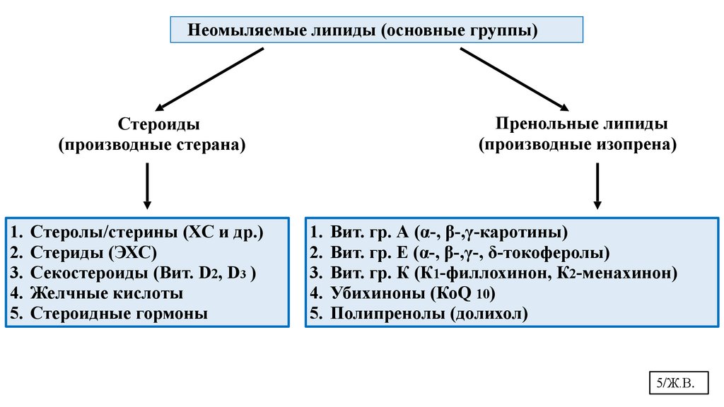 делятся на две большие группы: омыляемые (гидролизуются) и неомыляемые (не