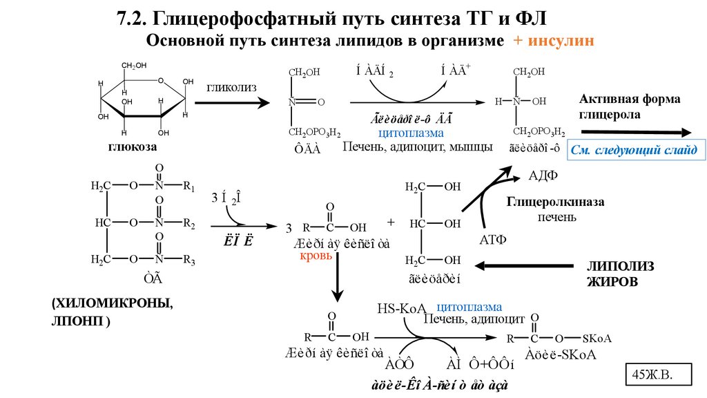 7.2. Глицерофосфатный путь синтеза ТГ и ФЛОсновной путь синтеза липидов в организме + инсулин
