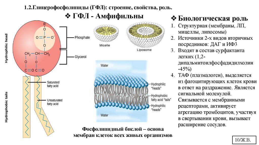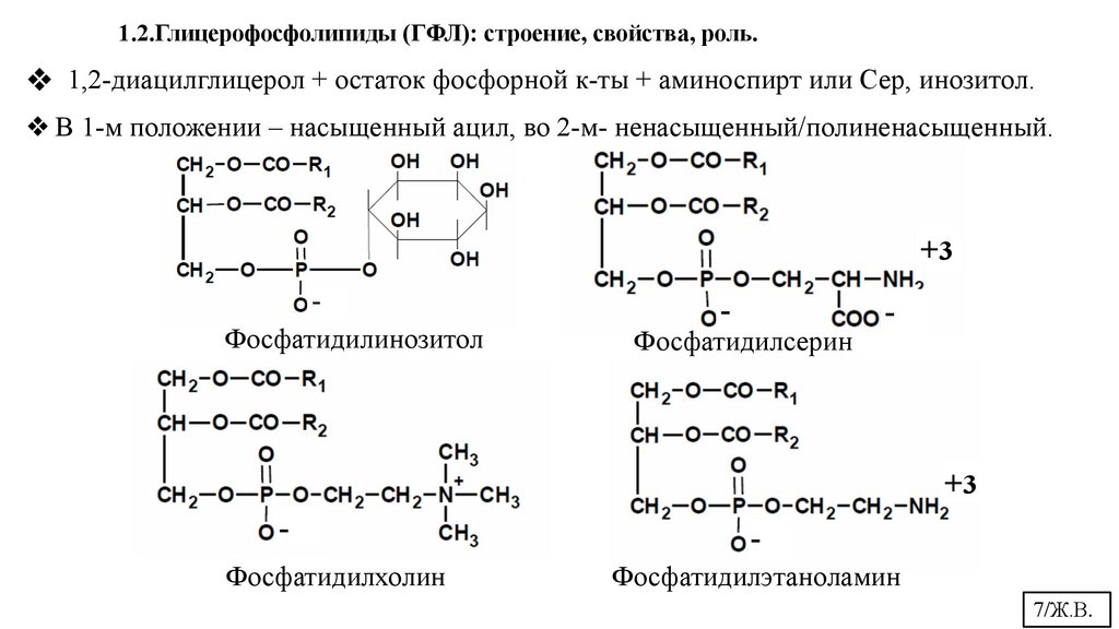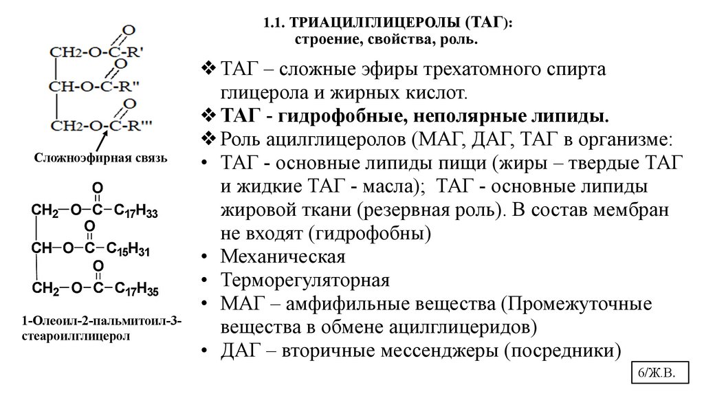 1.1. ТАГ: строение, свойства, роль;1.2. ГФЛ: строение, свойства, роль.