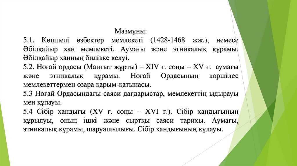 Мазмұны:5.1. Көшпелі өзбектер мемлекеті (1428-1468 жж.), немесе