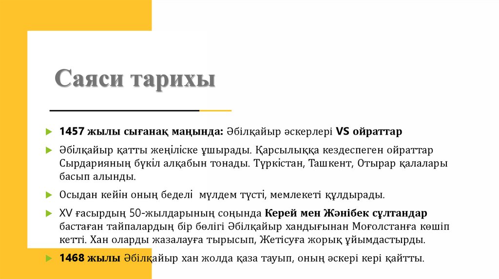 Саяси тарихы1457 жылы сығанақ маңында: Әбілқайыр әскерлері VS ойраттар