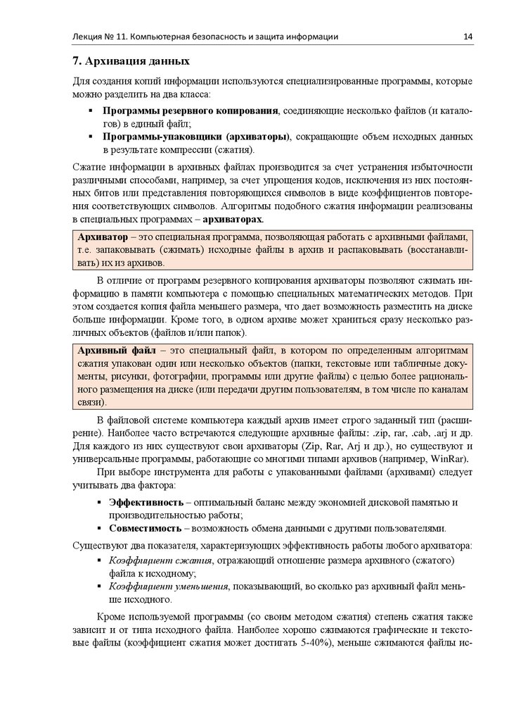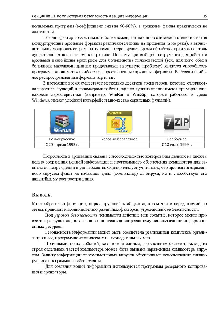 Информационная безопасность (ИБ). Угрозы безопасности информации. Методы защиты информации. Организационные, программно-технические, законодательные меры обеспечения ИБ. Вирусы. Основные свойства вирусов. Классификация вирусов. Пути заражения вирусами. Антивирусная защита. Пакеты антивирусных программ. Архивация данных.