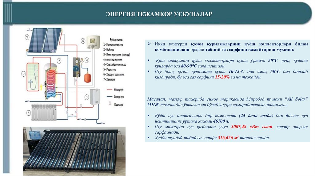 фоидаланиш ҳисобига табиий газ истеъмолини камайтириш: