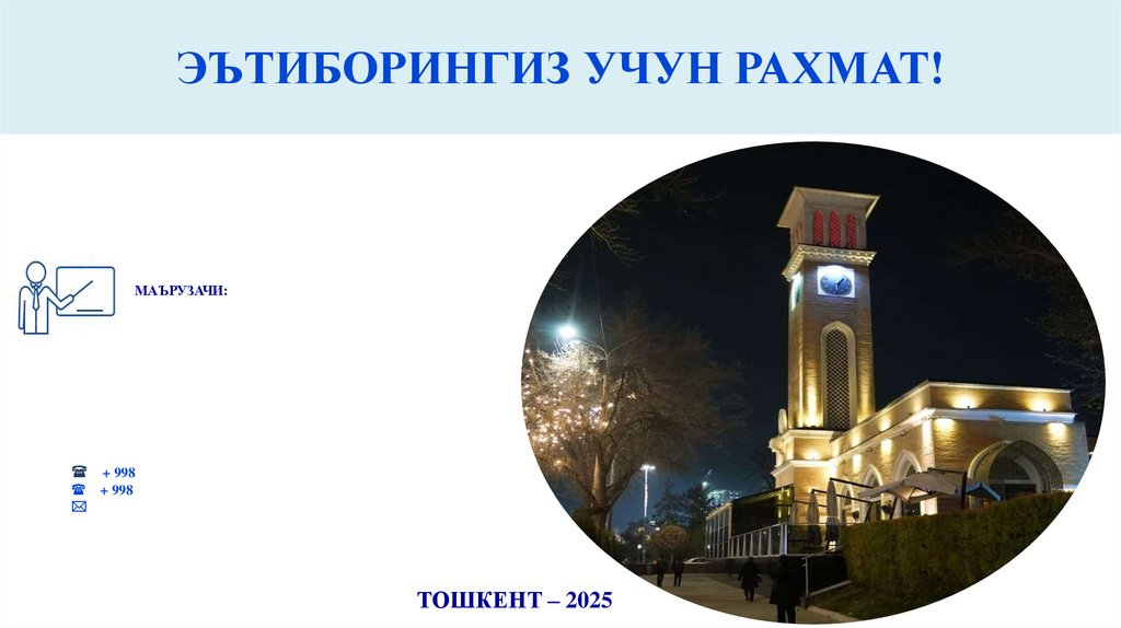 ЭЪТИБОРИНГИЗ УЧУН РАХМАТ!МАЪРУЗАЧИ: